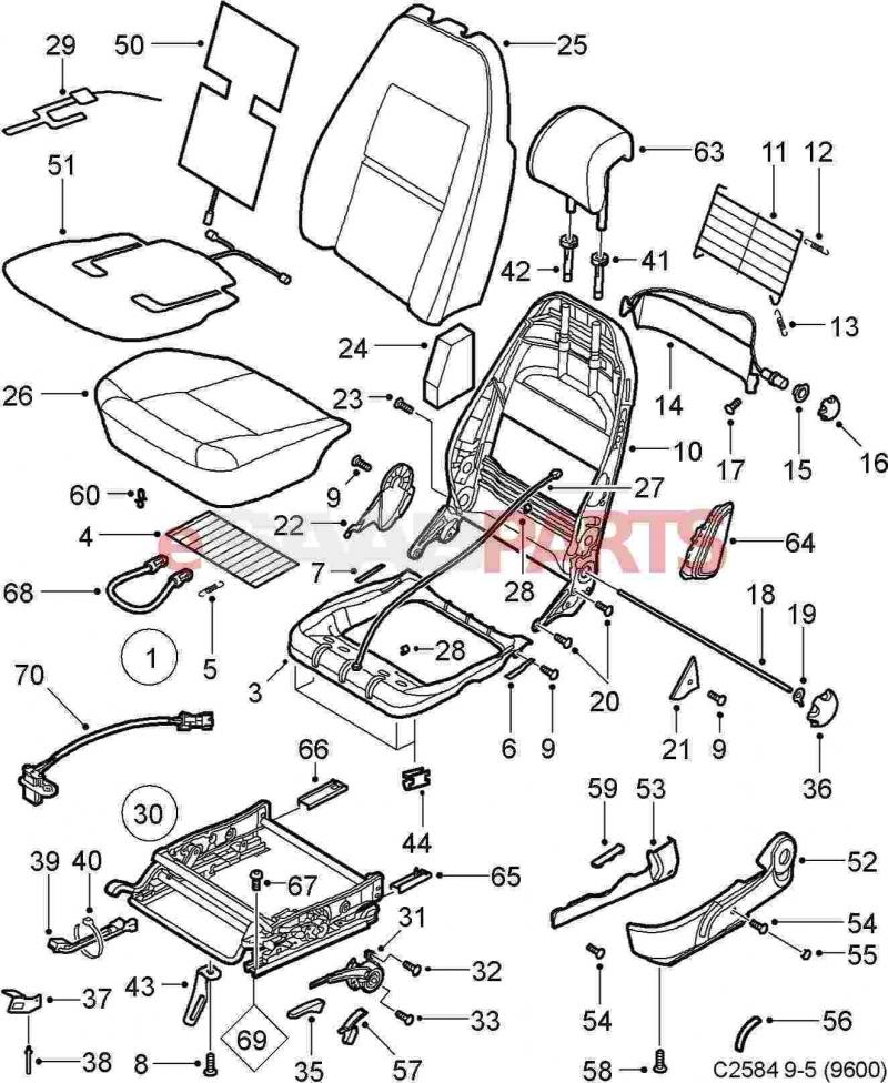 particolari sedili saab 9.5 interni